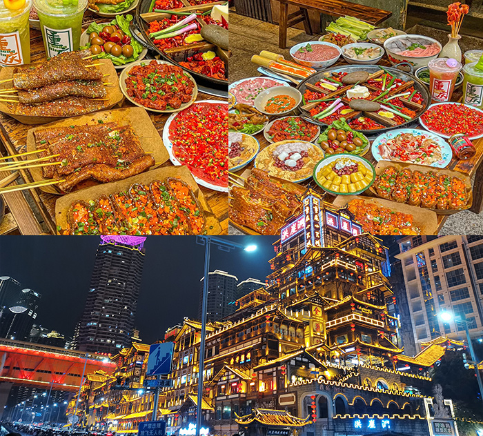 我们是从出发,飞机抵达重庆江北国际机场,一出站就看到提前预约的已经在等我了。抵达重庆自然是要从解放碑开始解锁各色小吃,吃饱喝足后,可以在晚上8点后打卡洪崖洞,随后前往千厮门大桥拍摄洪崖洞全景。